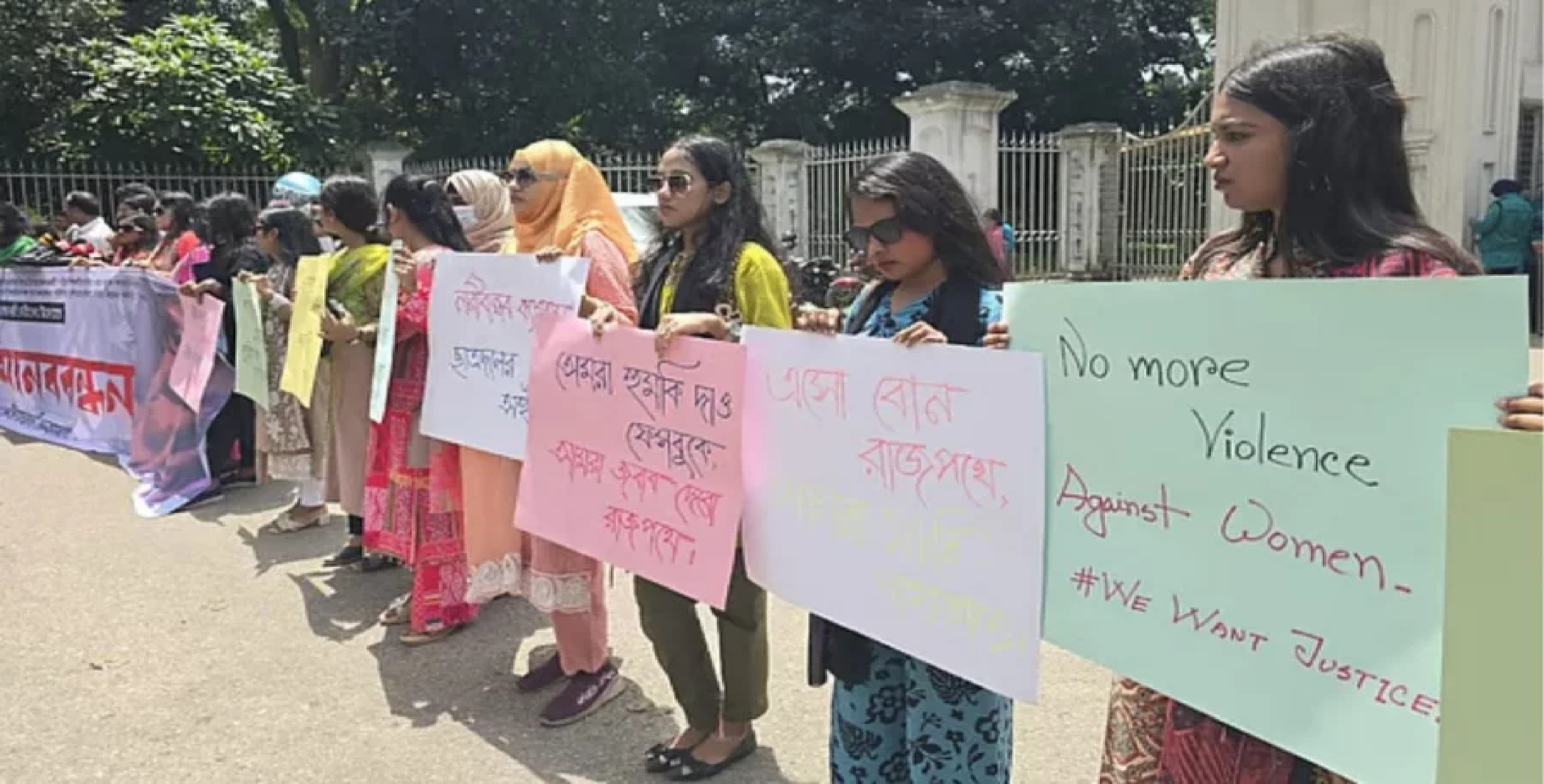 সাইবার বুলিং, নারী নিপীড়ন এবং বিশ্ববিদ্যালয় ক্যাম্পাসে চলমান গুপ্তরাজনীতির প্রতিবাদে মানববন্ধন করেছে জাতীয়তাবাদী ছাত্রদলের নারী...